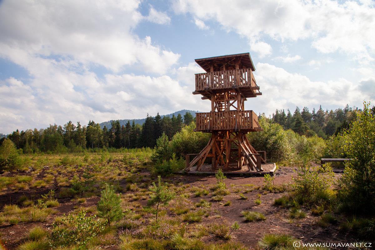 Cesta vede z části po povalovém chodníčku a z části po měkkém řašelinovém podloží. Z 9,2 metrů vysoké dvoupatrové vyhlídkové věže lze shlédnout celou plochu rašeliniště. Lze dohlédnout na Stožec, Boubín i na Želnavskou pahorkatinu.