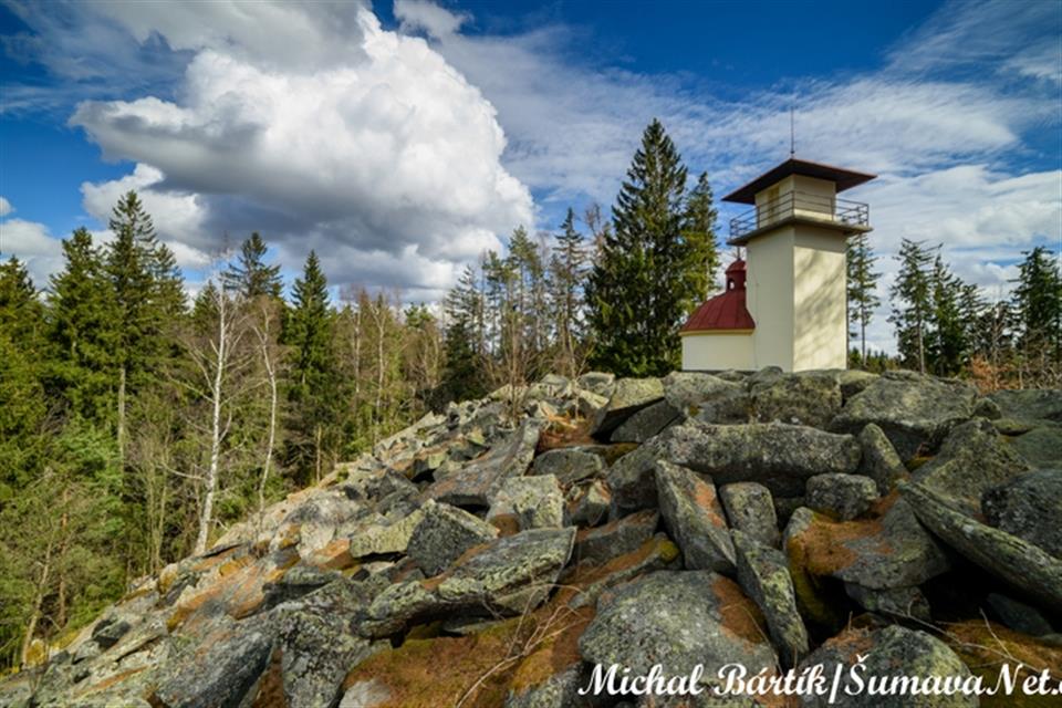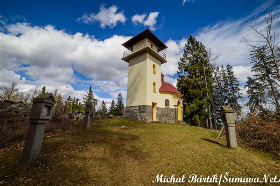 Na Mařském vrchu u obce Svatá Maří poblíž Vimperka je unikátní stavba svého druhu - rotunda s kaplí sv. Václava s přistavěnou hranolovou vyhlídkovou věží.